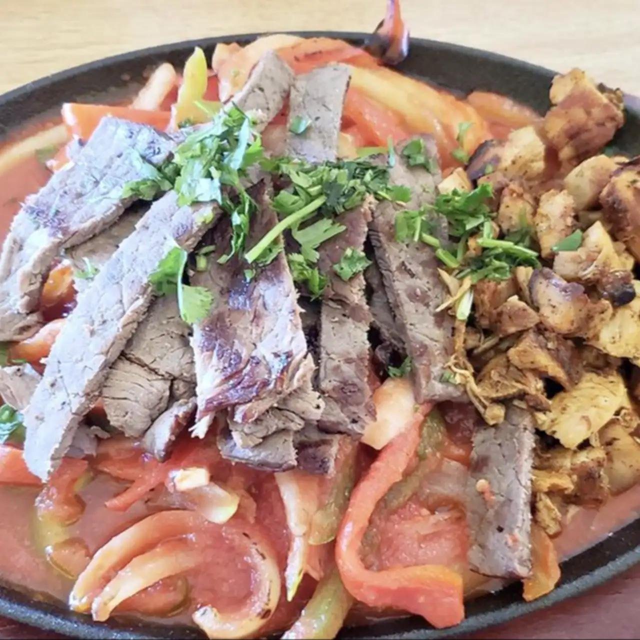 Choose two or three of your favorite meats, including shrimp, sautéed with red and green bell peppers, onions, fajita sauce, and cheese. Served with rice, beans, and your choice of tortillas